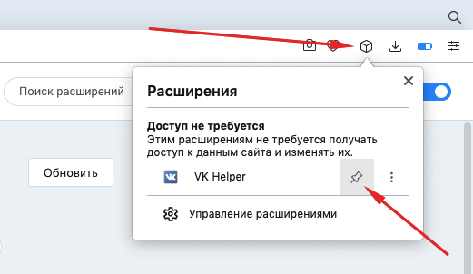 5. Если в правом верхнем углу не отобразилась иконка расширения, то нажимаем как показано на скрине:
